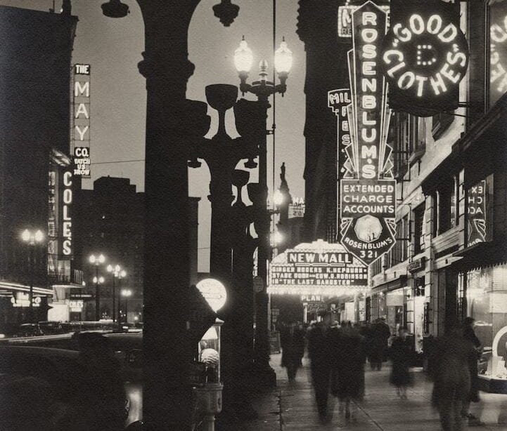 Euclid Avenue, 1937. The street was home to bustling stores and The Mall Theaters.
